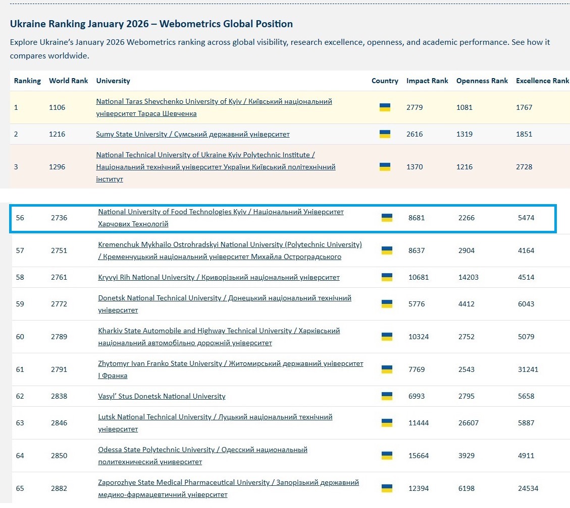 Постійна присутність НУХТ серед тисяч вишів у глобальному Ranking Web of Universities є свідченням невпинного розвитку нашого університету попри всі виклики воєнного часу.