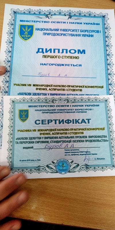 17-18 квітня у Національному університеті біоресурсів і природокористування України працювала VIII Міжнародна науково-практична конференція вчених, аспірантів і студентів «Наукові здобутки у вирішенні актуальних проблем виробництва та переробки сировини, стандартизації і безпеки продовольства», де наш університет гідно представили молоді доповідачі-студенти Андрій Буров і Ірина Івченко (наукові керівники – доцент кафедри технології жирів, хімічних технологій харчових добавок та косметичних засобів Олена Подобій і доцент кафедри машин і апаратів харчових та фармацевтичних виробництв Ігор Житнецький).