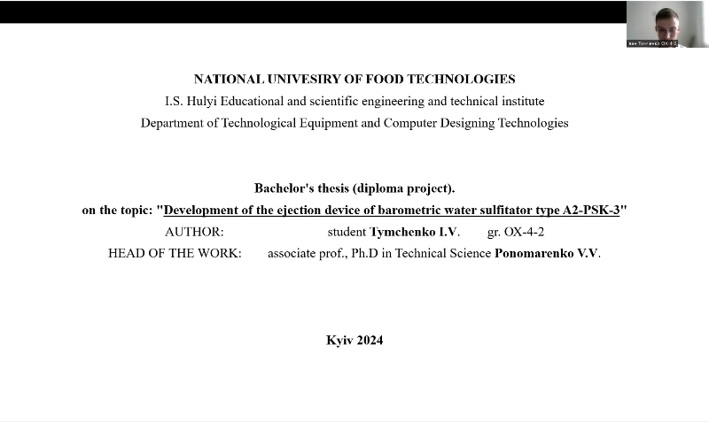 11 червня 2024 року розпочалися захисти кваліфікаційних робіт освітнього ступеня «Бакалавр» за спеціальністю 133 «Галузеве машинобудування», освітньою програмою «Інжиніринг харчових та біотехнологічних виробництв».