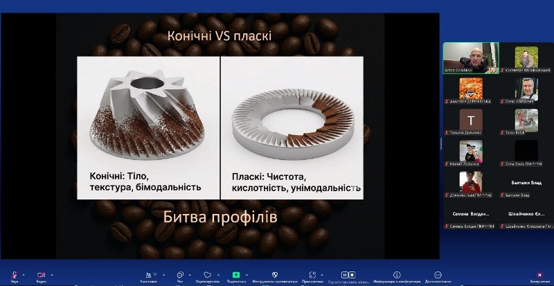Плавно переходячи до інженерних аспектів, лектор пояснив, чому помел є фундаментом смаку. Ступінь розмелювання визначає органолептичний профіль напою: грубий помел дає кислотність і «трав’янисті» ноти, дрібний – гіркоту й терпкість, а справжній баланс – у правильно підібраному sweet spot. Студенти побачили, як саме інженерія помолу формує якість екстракції.