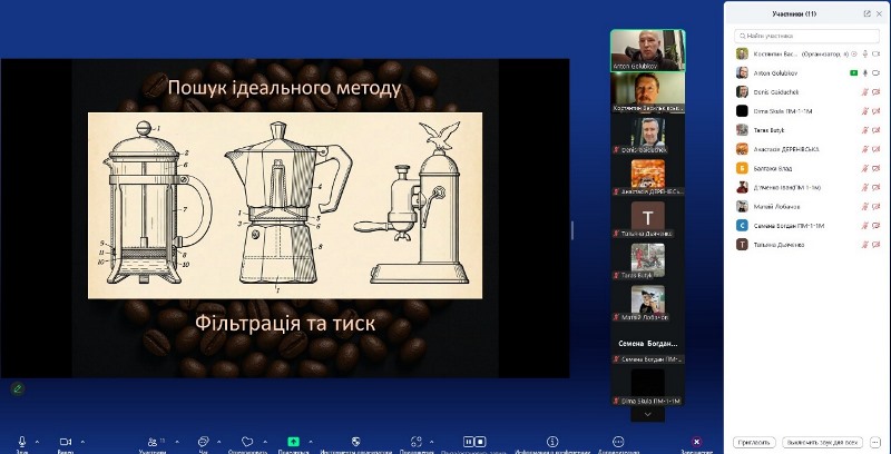 Шлях кави від зерна до чашки дослідили здобувачі освітньо-професійних програм «Прикладна механіка» та «Робототехнічні комплекси пакувальних виробництв» (спеціальність G9 «Прикладна механіка») і викладачі кафедри мехатроніки та пакувальної техніки на гостьовій лекції стейкхолдера, бренд-менеджера ТОВ «ЕСПРЕСІОНІСТИ ПАРТНЕРШІП» (Coffeemachines.PRO) Антона Голубкова, занурившись разом із фахівцем у світ кави і упаковки.