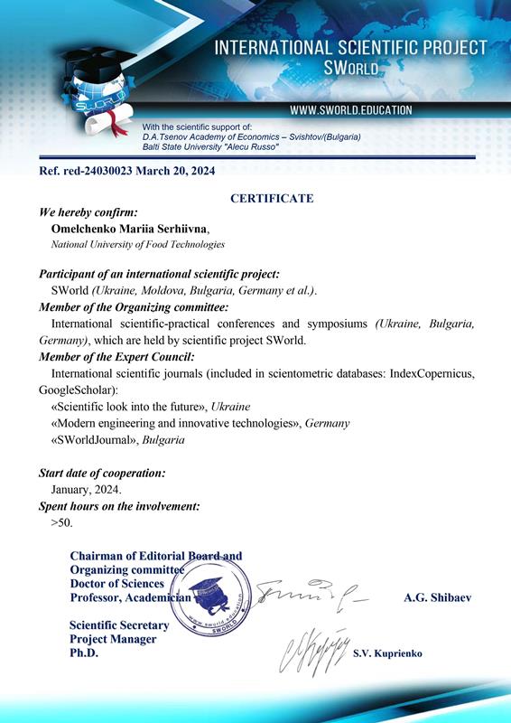 Асистентка кафедри технології ресторанної і аюрведичної продукції – учасниця міжнародного наукового проєкту «SWorld»