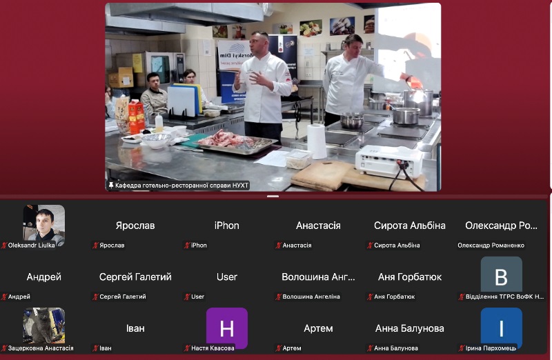 На кафедрі готельно-ресторанної справи в рамках Ярмарки вакансій-2025, за ініціювання керівниці відділу працевлаштування НУХТ Світлани Садокової відбувся практичний майстер-клас «Мистецтво рамену. Автентичні рецепти від Іллі Червенка», присвячений технології приготування рамену та інших страв японської кухні. Захід відбувся у змішаному форматі у рамках вивчення дисципліни «Кулінарна етнологія» для здобувачів спеціальності «Готельно-ресторанна справа». До участі також на запрошення кафедри готельно-ресторанної справи долучилися здобувачі спеціальності «Харчові технології» та «Туризм та рекреація», а також студенти відокремлених структурних підрозділів НУХТ – Київського фахового коледж уресторанного господарства та Волинського фахового коледжу.