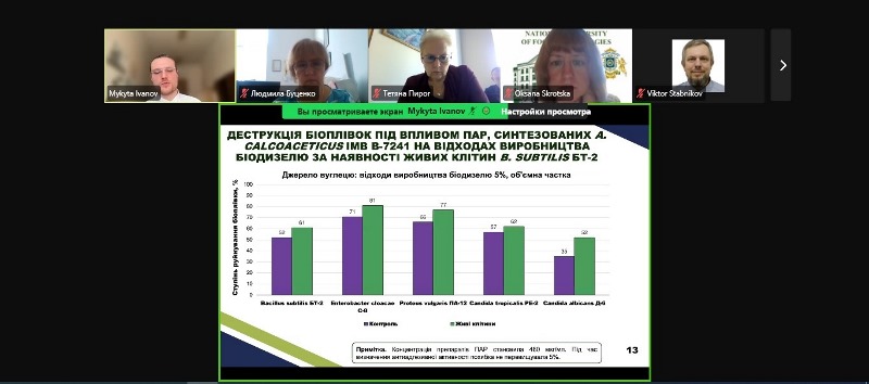 Сьогодні у разовій спеціалізованій вченій раді відбувся блискучий захист дисертації «Вплив біологічних індукторів на антимікробну та антиадгезивну активність поверхнево-активних речовин Acinetobacter calcoaceticus IМВ В-7241» випускником аспірантури кафедри біотехнології і мікробіології Микитою Івановим на здобуття ступеня доктора філософії у галузі знань 16 «Хімічна та біоінженерія» за спеціальністю 162 «Біотехнології та біоінженерія». Наукова керівниця здобувача – д.б.н., професорка Тетяна Пирог.