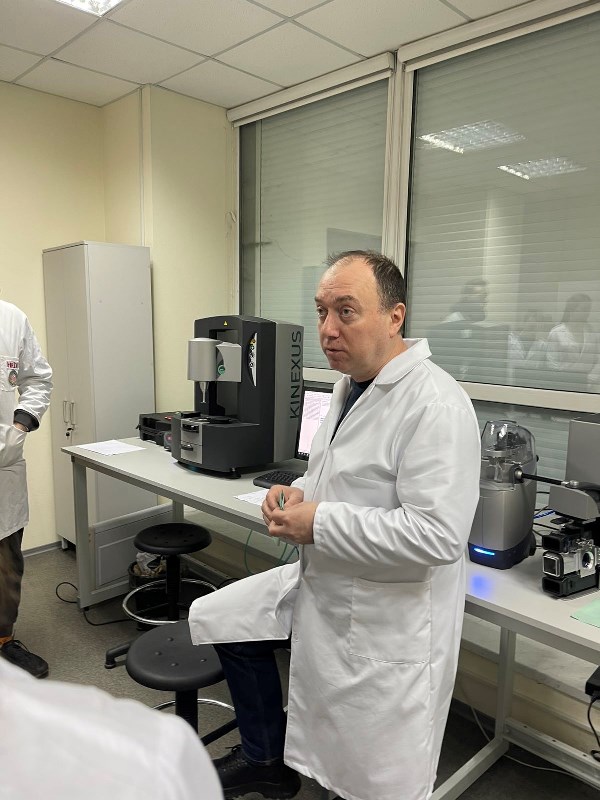 Заняття на тему «Дослідження структурно-механічних характеристик різних структуроутворювачів» було проведене особисто завідувачем лабораторії, старшим науковим співробітником Андрієм Мариніним, який познайомив студентів із наявним обладнанням, розповів про основні принципи роботи реометра Kinexus pro+ та показники, що можна визначити за його допомогою.