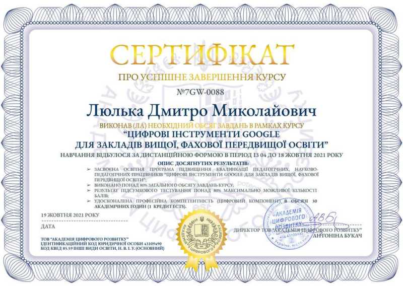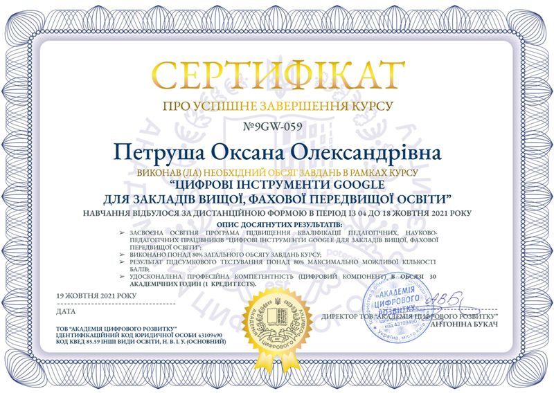 Виконавши всі вимоги, наші викладачі отримали сертифікати, але значно важливішою за цю формальну ознаку є той обсяг найсучаснішої інформації, що здатна значно прискорити і полегшити роботу в різних сферах викладацької діяльності.