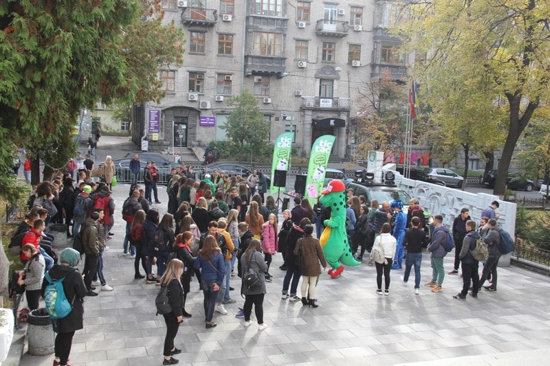 Ще далеко на підході до головного корпусу університету відчувалося, що сьогодні у НУХТ відбувається чергове цікаве дійство – лунала музика, увагу привертали яскраві банери й ведучий, шалена енергія якого передавалася всім. Це вітали гостей університету добрі друзі й давні партнери – екіпаж Tic Tac-мобіля (представники групи «Ferrero» в Україні). Вони подарували заряд позитиву й енергії нашим гостям, студентам і викладачам, низкою запальних конкурсів і своїми призами-подарунками учасникам.