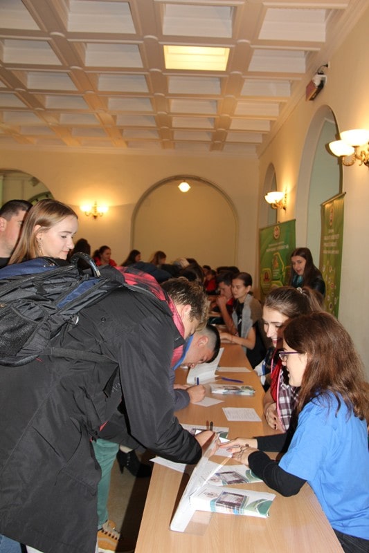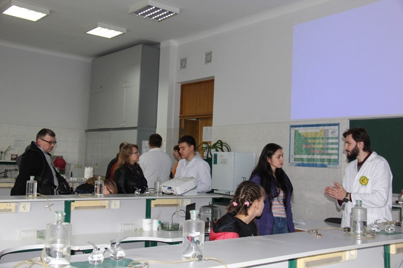 Після такого несподіваного й веселого вітання, учасники Дня відкритих дверей могли оглянути виставку досягнень інститутів і факультетів університету і завітати до навчальних і наукових лабораторій, поспілкуватися з керівництвом, викладачами і студентами.