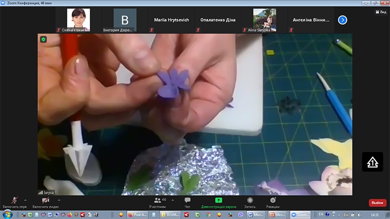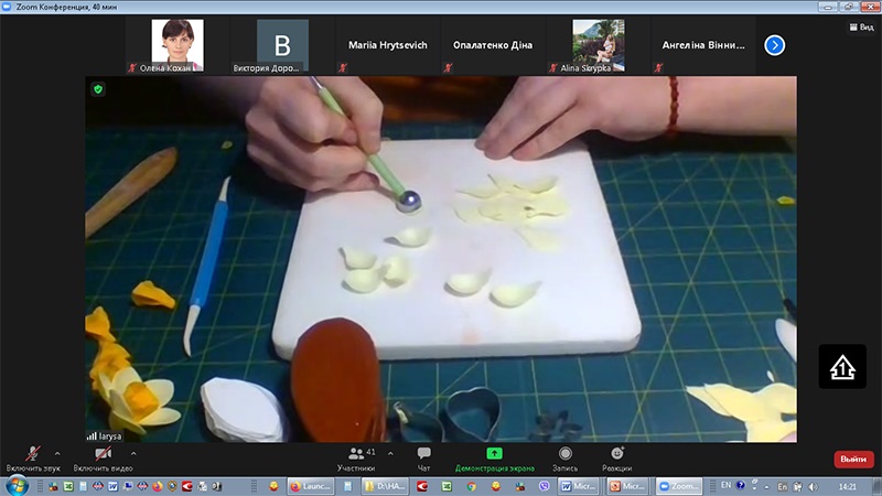 Частина зустрічі була присвячена майстер-класу по виготовленню квітів із цукрової маси. Здобувачі дізналися, що такі солодкі квіти можна виготовляти з шоколаду, цукрової, бобової та рисової пасти. У режимі реального часу фахівчиня продемонструвала процес виготовлення цукрових квітів (нарцису та лісової фіалки), розповіла про необхідний інструмент і техніку виготовлення.