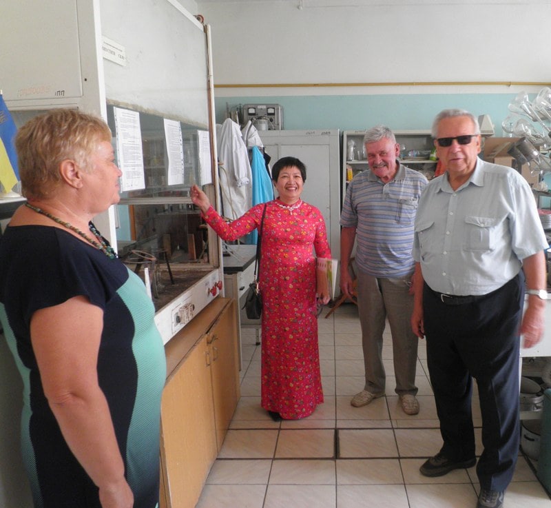 У рамках візиту гості відвідали кафедру технології продуктів бродіння і виноробства, поспілкувалися з її завідувачем Анатолієм Куцом, оглянули навчальні й наукові лабораторії. Їх вразив рівень технічного оснащення навчального процесу й наукових досліджень. А наша колишня аспірантка Нгуєн Тхі Хоай Чам пригадала, як сама проводила свої дослідження у цих лабораторіях і з особливою теплотою свого наукового керівника, професора Анатолія Мелетьєва.