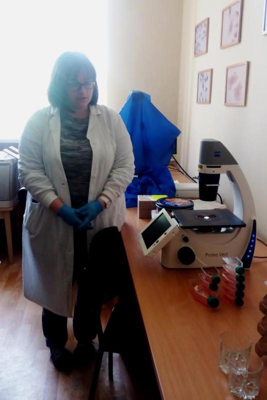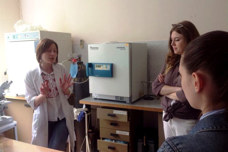 Дуже приємно, що співробітники Інституту знайшли час у своєму напруженому робочому графіку і розповіли про свою роботу студентам. Так, к.б.н., с.н.с. Олександра Лихова продемонструвала можливості сучасної мікроскопічної техніки і розповіла про клітинні лінії, які зберігаються в банку клітин Інституту, а к.б.н., с.н.с. Ольга Караман ознайомила із реаліями і завданнями, які вирішують у лабораторії онкоімунології та конструювання протипухлинних вакцин. Побували студенти й у віварії Інституту.