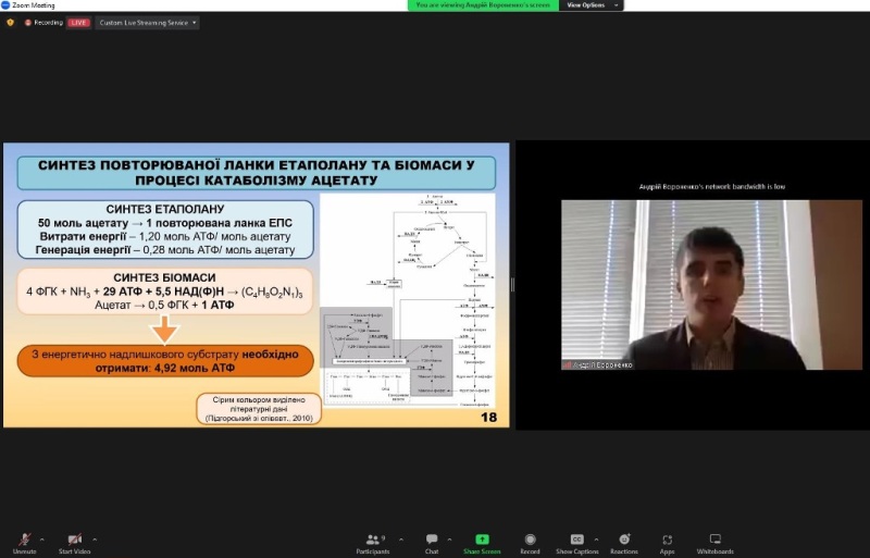 2 лютого 2023 року відбувся третій захист дисертацій аспірантів кафедри біотехнології і мікробіології. У цей день свою роботу «Біоконверсія суміші відпрацьованої олії та С2-С6–субстратів у мікробний екзополісахарид етаполан» представляв один із кращих вихованців кафедри Андрій Вороненко.