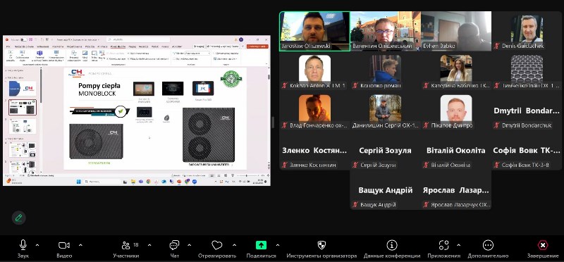 13 травня 2025 р. у рамках лекційних занять із дисциплін «Конструювання технологічного обладнання харчових виробництв» і «Високоефективні процеси і обладнання галузі» для здобувачів освітнього ступеня «магістр» освітньої програми «Інжиніринг харчових виробництв» і освітньо-наукового ступеня «доктор філософії» освітньо-наукової програми «Машини та апарати харчових, мікробіологічних і фармацевтичних виробництв» відбувся онлайн-лекторій від технічного директора компанії кліматичного обладнання ERKUL (м. Варшава, Польща) Ярослава Олішевського. Модераторами зустрічі були доцент кафедри технологічного обладнання та комп’ютерних технологій проєктування Євген Бабко і професор Валентин Олішевський. На зустрічі були також присутні викладачі кафедри.