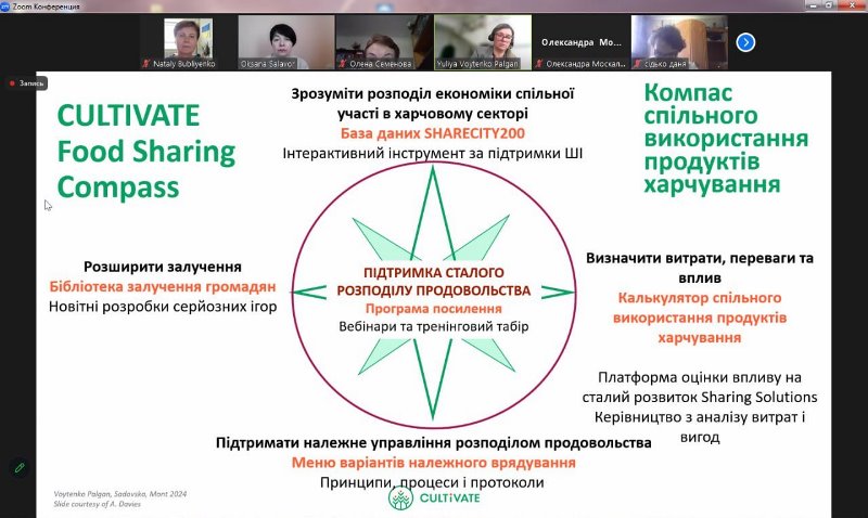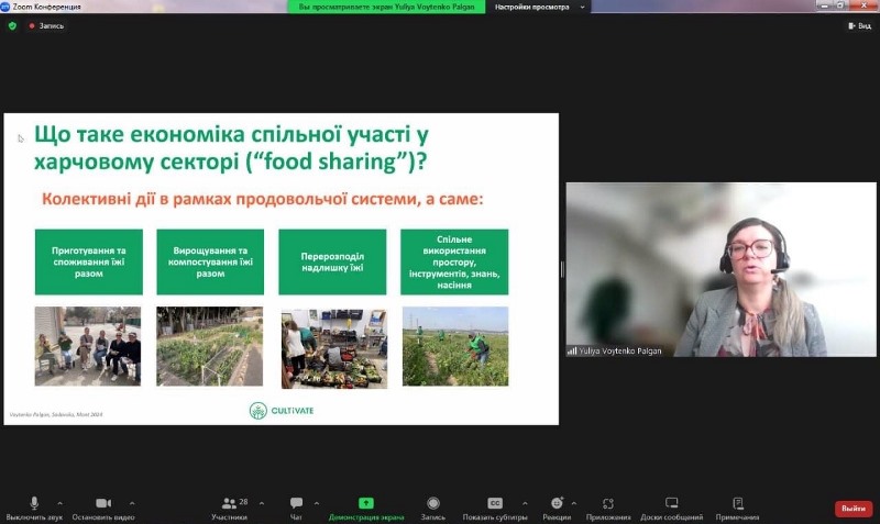 Слухачі ознайомилися з можливостями food sharing – колективними діями у рамках продовольчої системи, функціонуванням банків продуктів та онлайн-платформ перерозподілу надлишків їжі, успішними кейсами великих європейських міст у цій сфері.