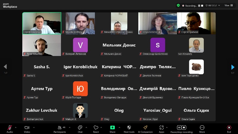Далі заслухали виступи фахівців із інших установ і здобувачів освіти. Обговорювалося застосування штучного інтелекту в різних сферах життя, нейромережі та машинне навчання, інтелектуальний аналіз даних, комп'ютерний зір і навігація, автоматизація та робототехніка, кіберзахист і безпека даних, математичне моделювання та прогнозування процесів, а також створення прикладних інформаційних систем.