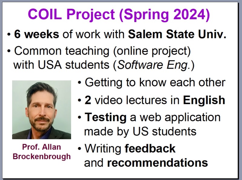 У рамках проєктів COIL (Collaborative Online International Learning) здобувачі з різних країн протягом декількох тижнів разом вивчають певну тему. З боку НУХТ це були чотири групи третього курсу спеціальності 122 «Комп’ютерні науки» в рамках дисципліни «Кросплатформне програмування» (55 осіб). Із боку Салема долучилися 22 студенти спеціальності «Комп’ютерні науки» в рамках курсу «Інженерія ПЗ».