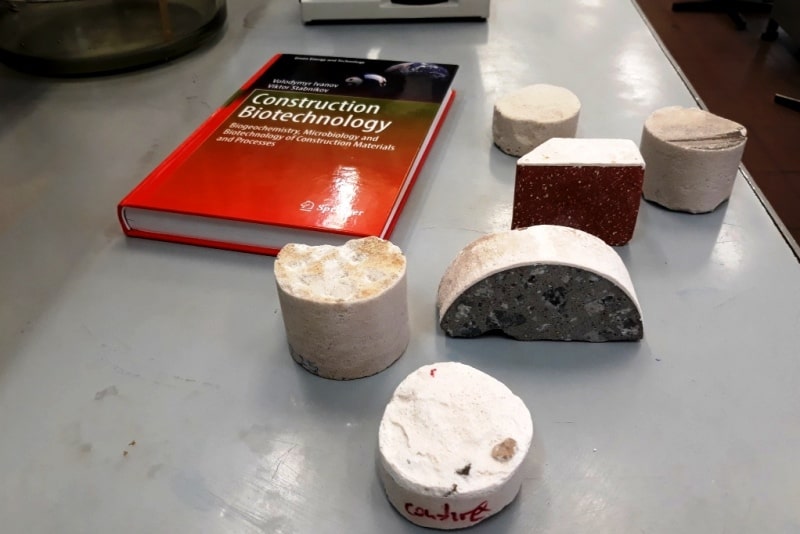 Журналісти каналу 1+1 завітали у гості зацікавлені дослідженнями доцента кафедри Віктора Стабнікова щодо процесів біоцементації. Науковець розповів про можливості біотехнології та застосування біоцементації на практиці і, як саме це може допомогти зберегти довкілля. Також продемонстрував зразки вже готових прикладів впровадження своїх досліджень, чим вразив гостей. Особливо вражаючим виглядає перспектива ремонту та підтримання належного стану доріг саме завдяки використанню біотехнологічних процесів.