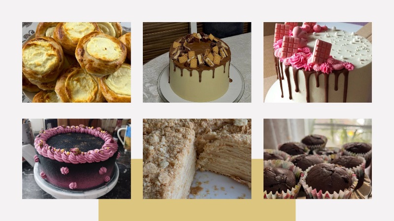 Наші майбутні зірки кондитерського мистецтва ділилися світлинами мусових тортів, бенто-тортів, чізкейків, крокембушів, меренгових рулетів, тартів, трайфлів, капкейків, кексів, профітролів, тарталеток, пастейшн, зефіру, сінабонів, макарунсів, тірамсу, імбирних і медових пряників, мармурового печива, цукерок, великодніх виробів із різноманітними варіантами яскравого оригінального оформлення до найсвятковіших подій.