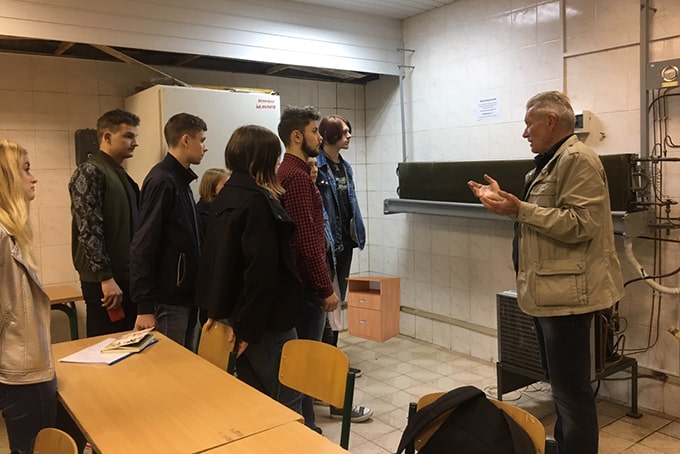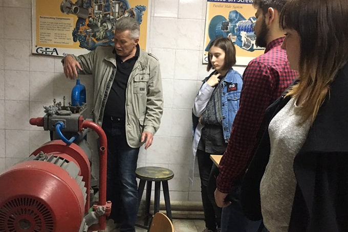 Асистент кафедри теплоенергетики та холодильної техніки Юрій Гришуков детально розповів студентам про принципи роботи промислових і побутових холодильних установок, основні особливості їх роботи та відмінності будови.