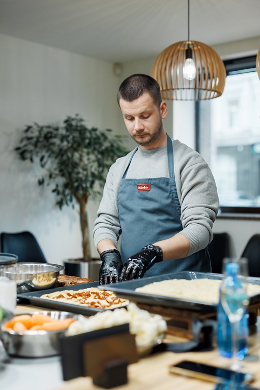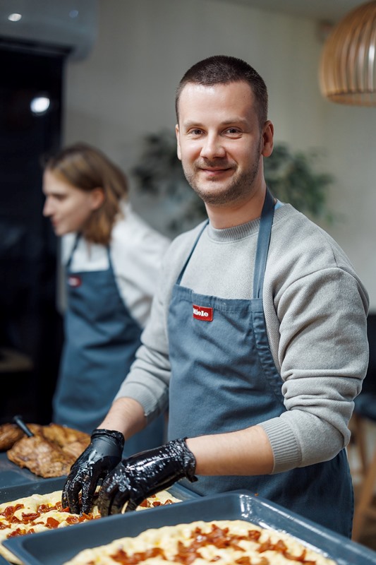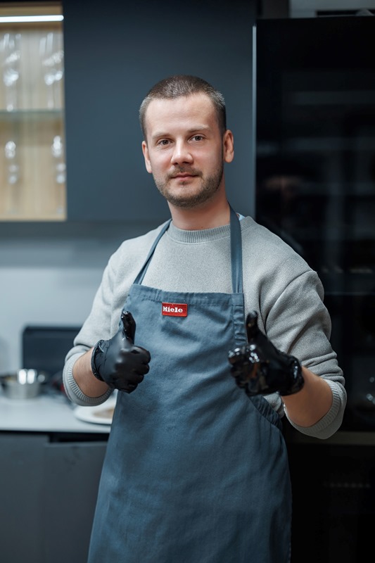 Нещодавно Miele Experience Center перетворився на справжню лабораторію смаків і ароматів, де гості отримали унікальну можливість зануритися у світ високого кулінарного мистецтва. Серед активних учасників заходу був старший викладач кафедри технології ресторанної і аюрведичної продукції та кулінарний експерт Артем Ущаповський, який не лише спостерігав за процесом, а й узяв на себе роль помічника шефа. Він показав, як поєднувати практичні навички з принципами фудпейрингу та експериментувати зі смаковими комбінаціями.