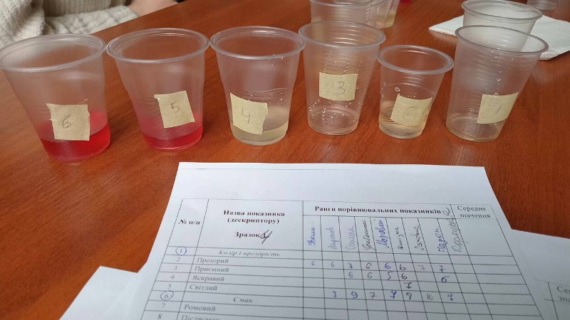 Здобувачі освіти взяли участь у підготовці дегустаційних зразків ферментованих трав’яних напоїв, склали дегустаційний лист і розглянули особливості визначення окремих показників, продегустували сім зразків напоїв, ознайомилися з особливостями обрахунку дегустаційних листів і визначили рейтинг представлених напоїв.