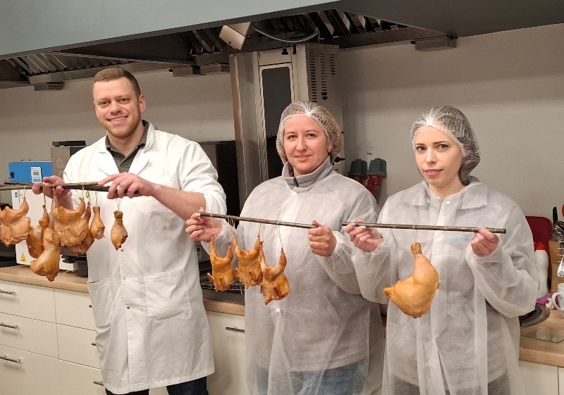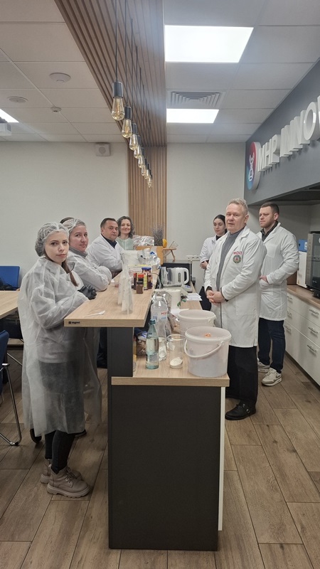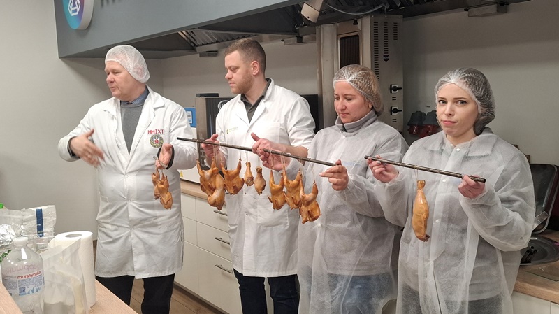 10 квітня для слухачів сертифікатних програм завідувачем кафедри технології м'яса і м'ясних продуктів Василем Пасічним і директором ТОВ «Про-Файбер» Миколою Воронцовим були проведені два лабораторних практикуми – «Сучасні інгредієнти у виробництві ковбас: нові тренди рецептурного комбінування та їх вплив на якість продукції» та «Технологія виробництва копчено-варених продуктів з птиці: інновації та особливості процесу».
