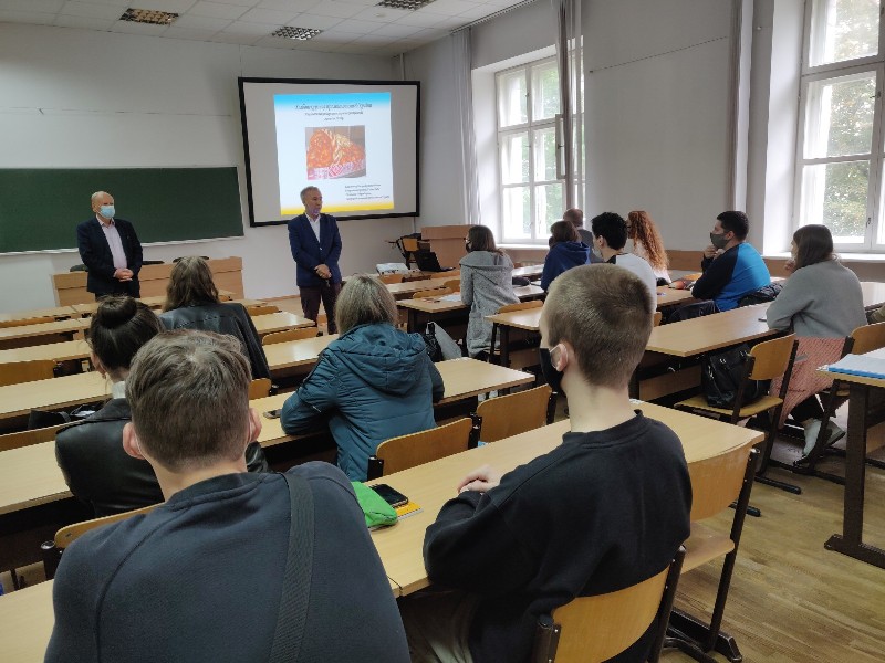 На кафедрі технології хлібопекарських і кондитерських виробів відбулася чергова гостьова лекція для здобувачів вищої освіти 4 курсу та магістрантів. На запрошення завідувача кафедри Володимира Ковбаси лекцію «Хлібопекарська промисловість України: становлення і сучасний стан» прочитав генеральний директор, голова ради об'єднання підприємств хлібопекарської промисловості «Укрхлібпром», заслужений працівник промисловості Олександр Васильченко.