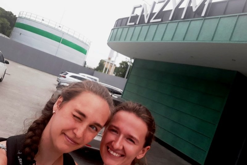 Уявіть, на виробництві є декілька 4-поверхових (!) ферментерів, що просто вражає. Окрім цього, вразили сепаратори для відділення біомаси, лабораторії (невеличкі, але вміщали все, що необхідно) та велика кількість апаратів, про які дівчата знали з теорії. Крім того, надзвичайно приємним є те, що компанія піклується про захист і збереження природних ресурсів, у чому студентки змогли переконатись на власні очі. Як основне джерело енергії заводу (70 %) компанія використовує біогаз власного виробництва, отриманий у результаті очищення стічних вод.