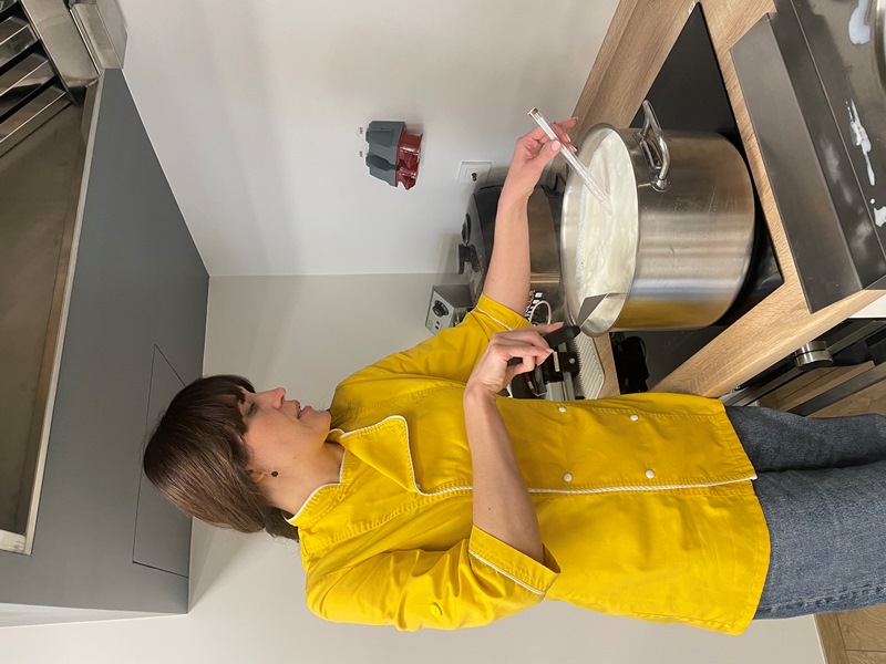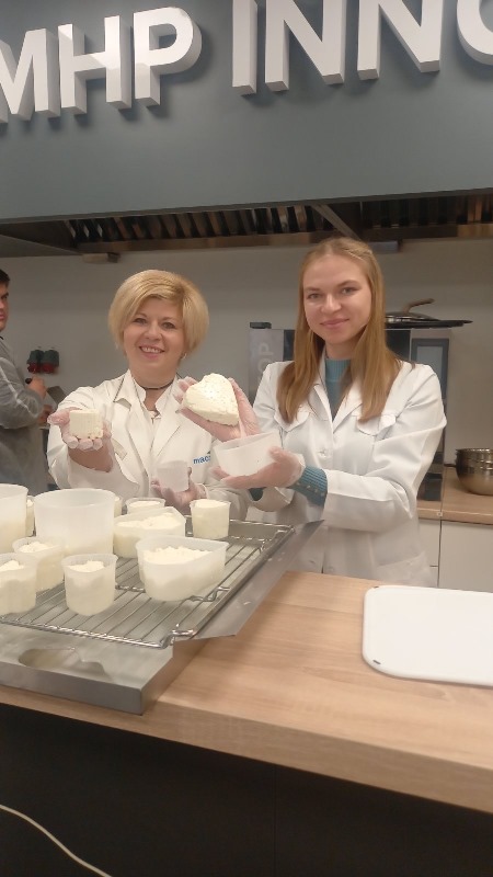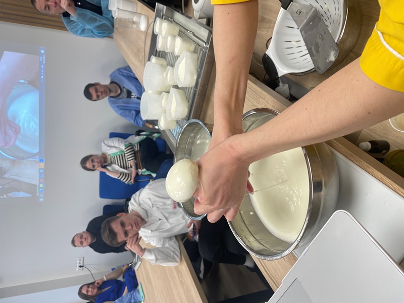 Майстер-клас став платформою для вивчення основних та індивідуальних технік виготовлення крафтових м’яких сирів. Моделювання виробництва розпочали з дослідження якості молока та його термічного оброблення, активізації заквасок і процесу формування сирної маси, а здобувачі мали можливість не лише спостерігати за процесом, але й активно брати участь у кожному етапі створення різних видів сирів.