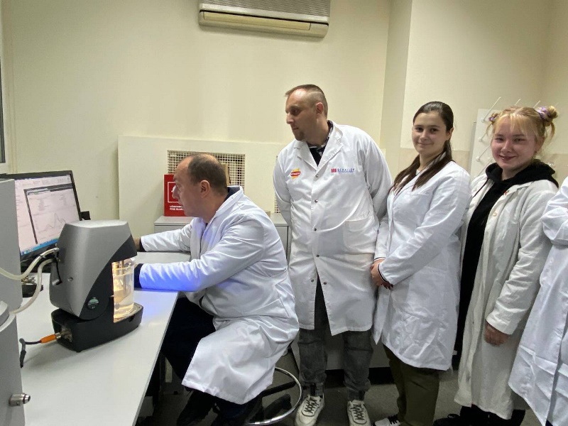 Здобувачі-екологи мали можливість попрацювати з лазерним дифракційним аналізатором Mastersizer 3000, який забезпечує високу точність визначення розмірів частинок. Крім аналітичної платформи Mastersizer 3000, комплект включає обладнання для підготовки зразків, ємності та дозатори для подання необхідного об'єму дисперсанта, зонд для попереднього ультразвукового оброблення (диспергування проб) харчових продуктів (какао, молока, цукру тощо). Майбутні екологи дослідили гранулометричний склад осадів, бо для підбору ефективних природоохоронних технологій та екологічної модернізації існуючого природоохоронного обладнання ця аналітична платформа є незамінним інструментом. Особливо вразила здобувачів можливість миттєвого оброблення результатів вимірювань та їх графічного представлення.