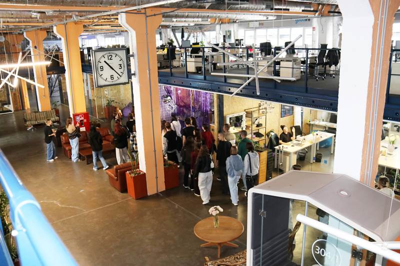 Програма заходу була максимально насиченою. Спершу студенти ознайомились з умовами праці, побутом і «культурним кодом» EVO.company. Спеціалістка з адаптації співробітників Маргарита Єременко провела для них екскурсію офісом, який вражає масштабами, ергономікою та оригінальним дизайном у стилі лофт. Це приміщення колишнього заводу площею 7000 м², де кожний із трьох поверхів розділений на два рівні й обладнаний під open space. Побут в EVO.company організовано так, щоб створити максимально комфортну атмосферу для роботи 24/7: смузі- та кавовий бари, кухні, лаунж-зони, кімнати для відпочинку та сну, місця для настільних ігор, спортивна зала, душові, бібліотека, власний фуд-корт, простора тераса, де проходять корпоративні івенти, презентації та ділові зустрічі.