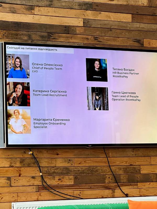 Друга частина зустрічі пройшла у форматі панельної дискусії за участю провідних HR-фахівчинь компанії: Олени Олексієнко – керівниці HR-напряму (Chief of People Team, EVO); Тетяни Богдан – HR-бізнес-партнерки RozetkaPay (HR Business Partner, RozetkaPay); Катерини Сергієнко – керівниці команди з підбору персоналу (Team Lead, Recruitment); Ганни Цвєткової – керівниці команди з операцій з персоналом (Team Lead, People Operations, RozetkaPay) та Маргарити Єременко – спеціалістки з адаптації співробітників (Employee Onboarding Specialist). Наші менеджери персоналу мали змогу не лише послухати виступи спікерок, а й долучитися до обговорення з ними актуальних трендів у HR-сфері, поставити запитання щодо особливостей працевлаштування в ІТ-компаніях, можливостей кар’єрного старту і професійного розвитку, факапів та успішних кейсів в їх особистому досвіді. Найцікавіші та найвлучніші запитання були відзначені подарунками – футболками з логотипом компанії, а всі учасники заходу отримали фірмовий мерч на згадку. Подія завершилася приємним сюрпризом від організаторів – кава-брейком і спілкуванням у неформальній атмосфері.