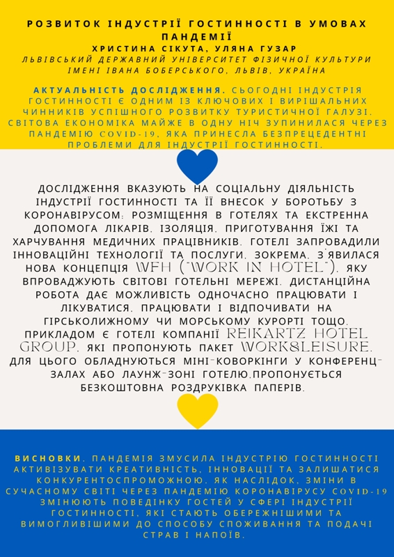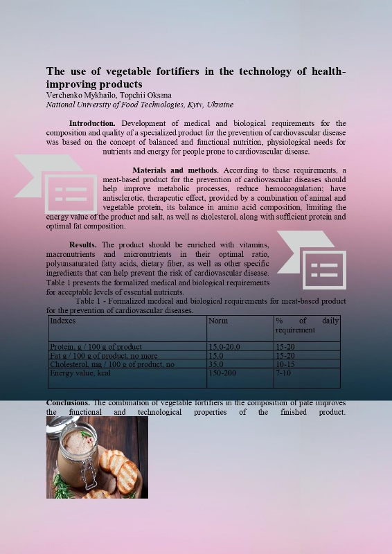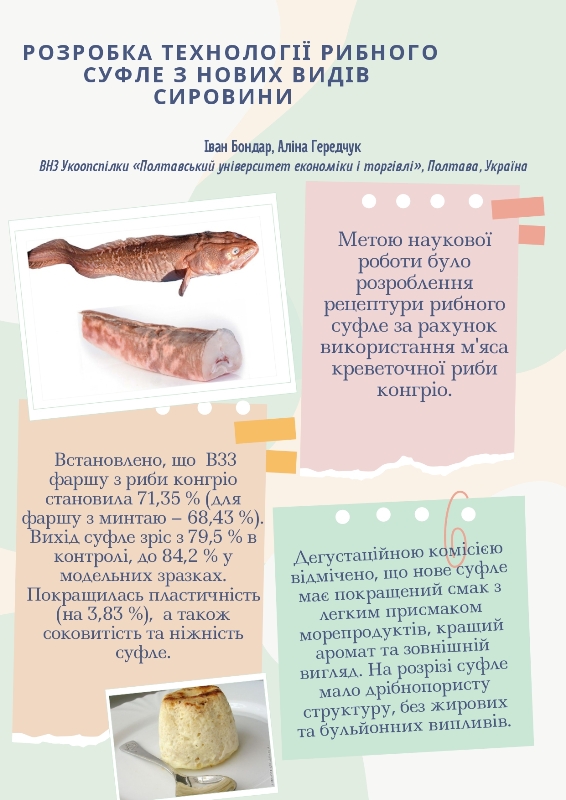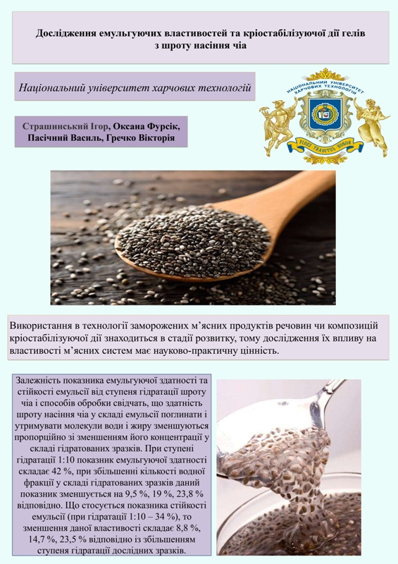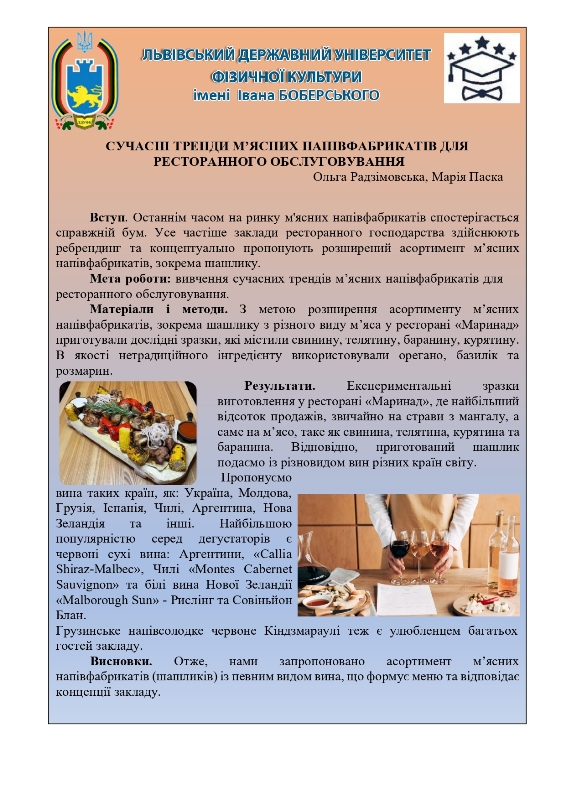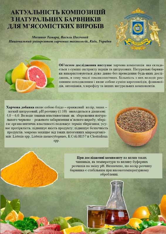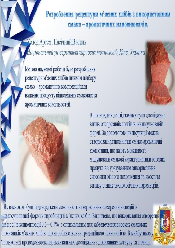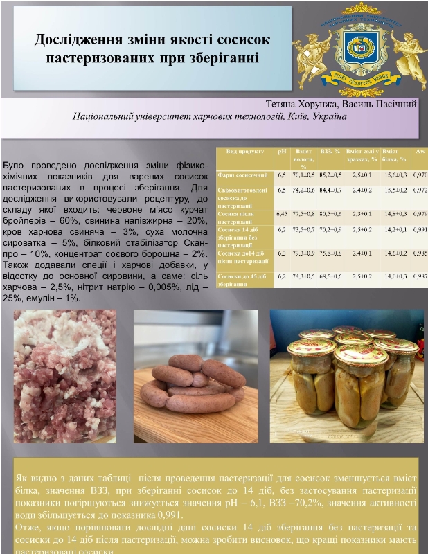 У рамках роботи Міжнародної наукової конференції молодих учених, аспірантів і студентів «Наукові здобутки молоді – вирішенню проблем харчування людства у XXI столітті», яка в 2022 році відбувається уже у 88-е, на кафедрі технології м'яса і м'ясних працює постерна сесія доповідей молодих науковців – здобувачів освітніх ступенів бакалавра, магістра, доктора філософії, які займаються науковими дослідженнями для м'ясопереробної галузі і суміжних виробництв, у тому числі сфери гостинності.