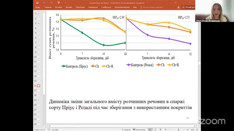 22 липня наша викладачка взяла участь у засіданні спецради, де опонувала дисертаційне дослідження Павла Булгакова на тему «Удосконалення технології зберігання спаржі з використанням комбінованого біополімерного покриття». Вона ґрунтовно проаналізувала представлене дослідження та надала свій відгук і зауваження щодо актуальності, ступеня обґрунтованості наукових положень, висновків і рекомендацій, достовірності та наукової новизни одержаних результатів, а також повноти їх викладення в наукових працях.