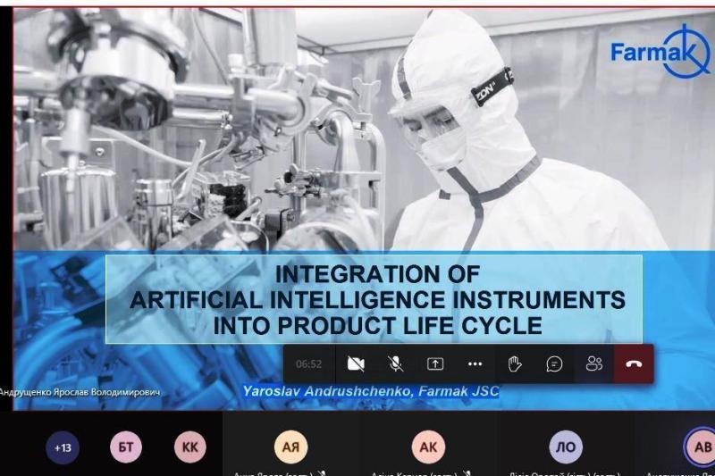Розпочав конференцію наш випускник Ярослав Андрущенко, який наразі є інженером з валідації комп'ютеризованих систем АТ «Фармак». Він доповідав на тему «Інтеграція інструментів штучного інтелекту у життєвий цикл продукту. Роботизація та автоматизація», особливу увагу приділивши критичним точкам виробництва, контакту людини з продуктом, а також окремо виділивши важливість діджиталізації виробництва задля уникнення контамінації. Доповідь і презентація були представлені англійською мовою, що, безперечно, демонструє широке коло професійних навичок наших випускників.