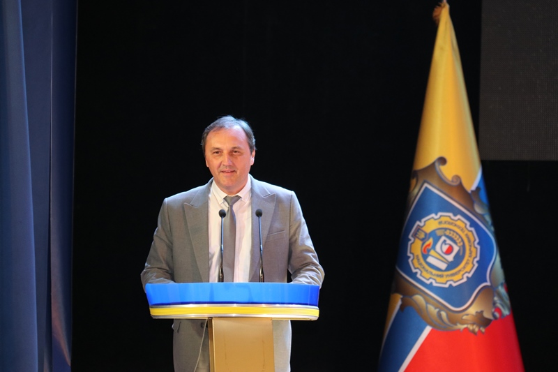 І сьогодні у актовій залі зібралася велика й дружна сім’я, щоб відзначити день народження рідного університету. Щиро й тепло привітав присутніх з ювілеєм альма матер і нагадав основні історичні віхи започаткування, становлення й розвитку нашого славетного вишу ректор, професор Олександр Шевченко.