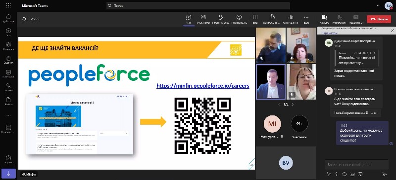 Здобувачі спеціальності 072 «Фінанси, банківська справа та страхування» 25 квітня долучилися до онлайн-заходу «День відкритих дверей у Міністерстві фінансів України», під час якого ознайомилися з внутрішніми процесами та системою роботи Міністерства, актуальними вакансіями для стажування студентів тощо.