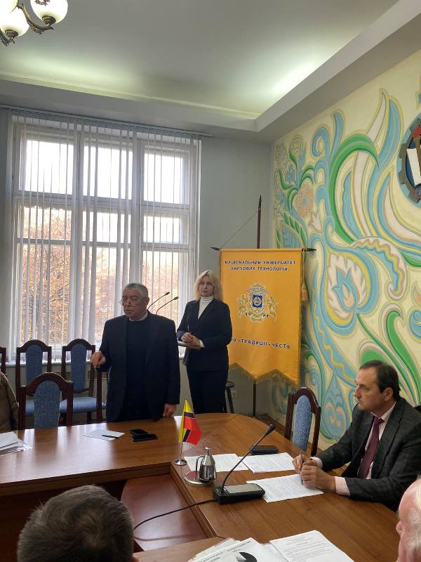 Розпочали з приємного – привітали колег, що відзначили дні народження між засіданнями, та ректор, професор Олександр Шевченко вручив нагрудний знак «Відзнака Національного університету харчових технологій» завідувачу кафедри машин і апаратів харчових та фармацевтичних виробництв, професору Олександру Гавві і диплом доктора наук доценту кафедри технологічного обладнання та комп’ютерних технологій проєктування Віталію Пономаренку.