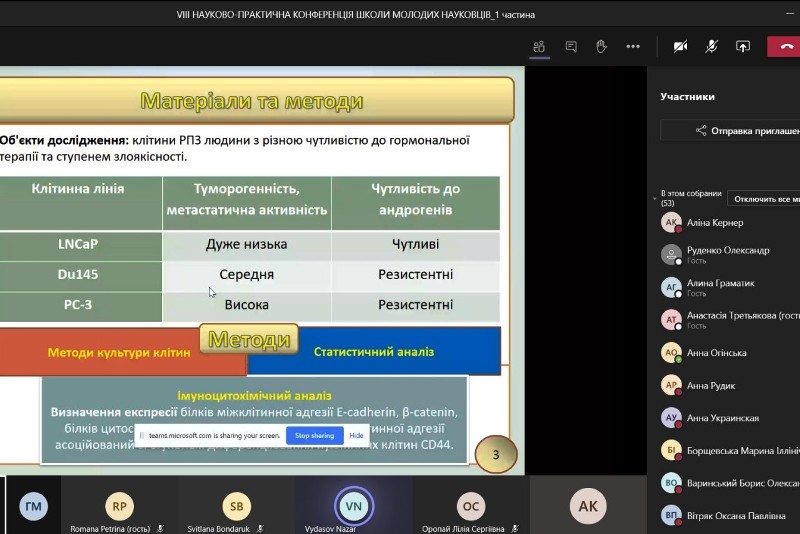 Магістрант другого року навчання Назар Видасов представив результати наукової роботи «Вплив гіперінсулінемії на експресію маркерів епітеліально-мезенхімального переходу в клітинах раку передміхурової залози людини».