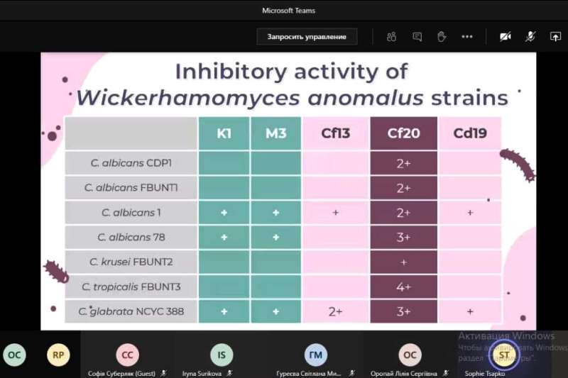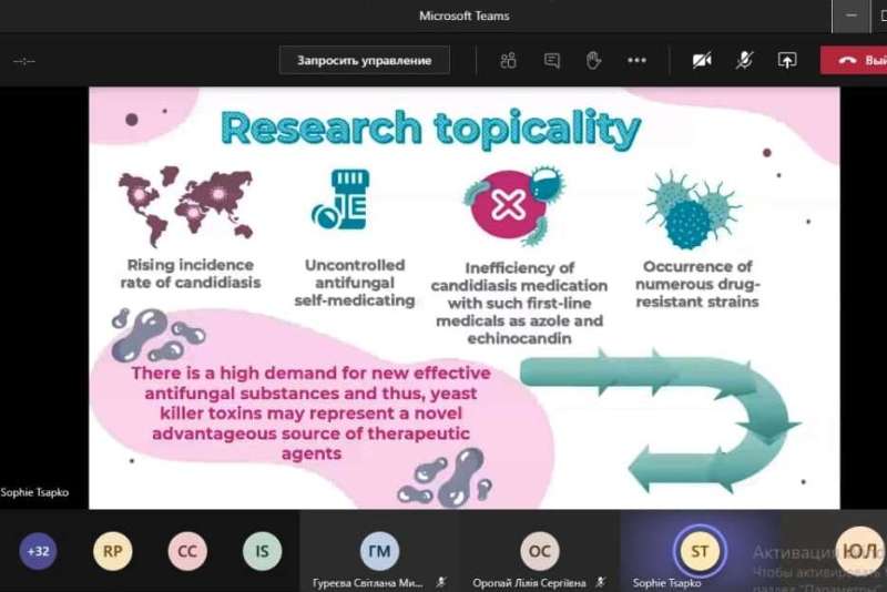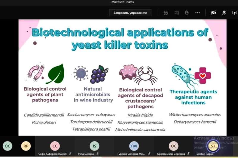 Софія Цапко представила доповідь, що стосувалася потенціалу дріжджових кілер-токсинів – «Yeast killer toxins as promising antifungal agents». Їй висловили побажання у майбутньому розробити на основі кілерних токсинів дріжджів новітній безпечний антимікотичний препарат із новим механізмом дії.