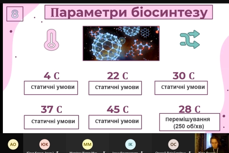 Присутніх зацікавила доповідь Юлії Лазюки «Антибактеріальні та антифунгальні властивості біогенних наночасток селену», що стосувалася можливості отримання наночасток металів із використанням бактеріальних клітин, а також їх біологічних властивостей.