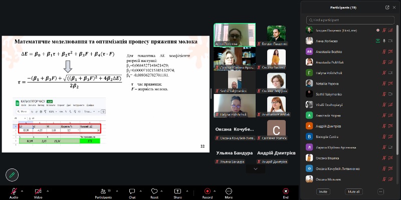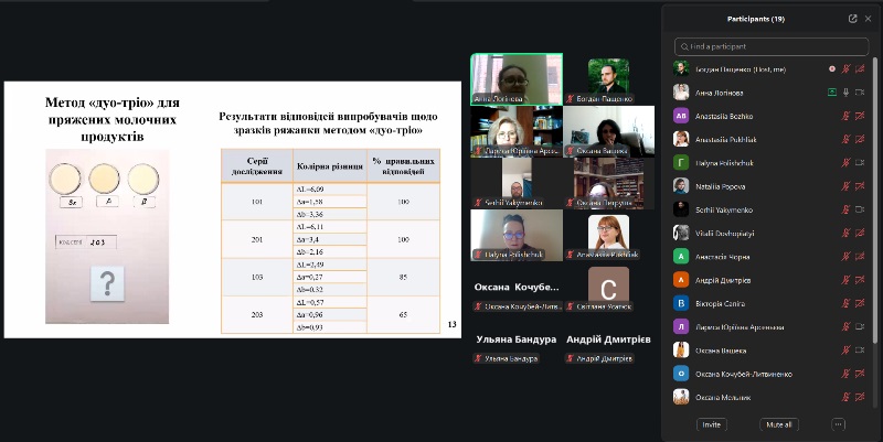 До наукового семінару долучилися науковці кафедри технології молока і молочних продуктів: професорки Оксана Кочубей-Литвиненко і Галина Поліщук, доцентки Ульяна Бандура, Тетяна Осьмак, Анастасія Пухляк, викладачі кафедри експертизи харчових продуктів: професорка Лариса Арсеньєва, доценти Оксана Вашека, Оксана Петруша, Світлана Усатюк, Богдан Пащенко, Оксана Мельник і Наталія Попова та аспіранти кафедри Анастасія Божко, Сергій Якименко, Віталій Довгоп’ятий та Андрій Дмитрієв.