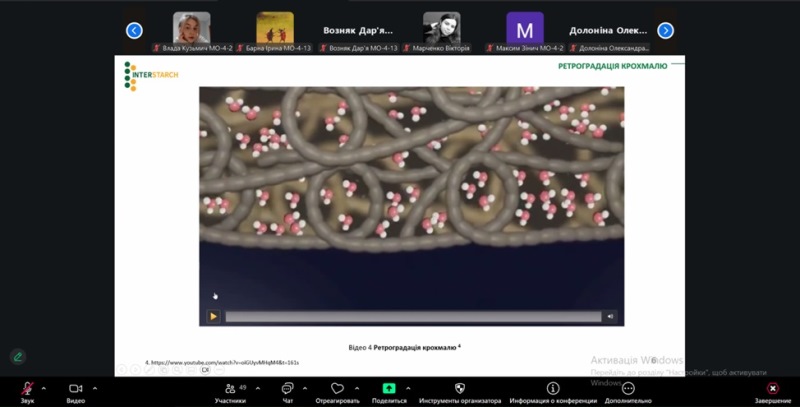 Лекційний матеріал супроводжувався інтерактивною візуалізацією, яка дозволила здобувачам освіти краще зрозуміти механізм дії модифікованих крохмалів у харчових системах.