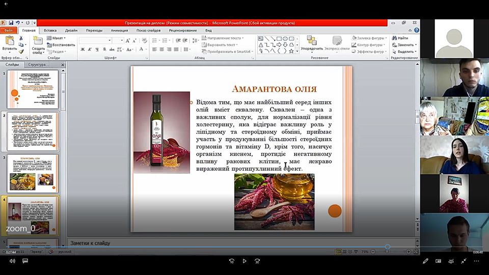 На кафедрі технології оздоровчих продуктів продовжуються успішні захисти кваліфікаційних робіт здобувачів освітнього ступеню «бакалавр».