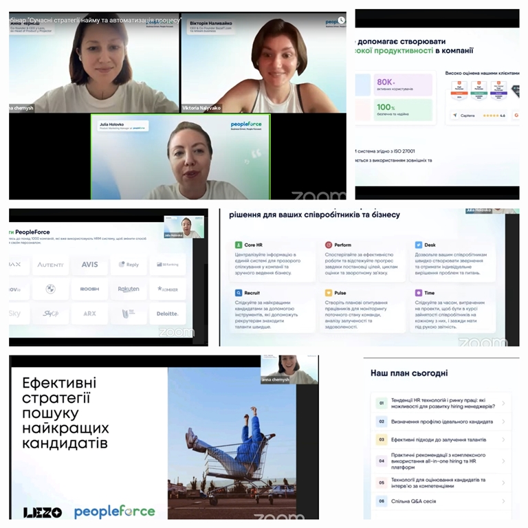 17 липня 2024 року здобувачі освітньо-професійної програми «Менеджмент персоналу» (бакалаври і магістри) долучилися до онлайн-вебінару «Сучасні стратегії найму та автоматизація процесу: від ідеального кандидата до продуктивного співробітника» від команди фахівців PeopleForce ‒ професійної HRM платформи для автоматизації HR та рекрутингу процесів.
