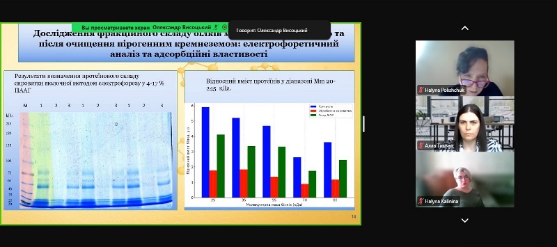 Тепло підтримала молодого науковця його наукова керівниця, професорка Оксана Кочубей-Литвиненко. Вона охарактеризувала дослідницькі, професійні й особисті якості здобувача, його здатність самостійно ретельно спланувати експеримент і підібрати комплекс методів, застосувати як загальноприйняті, так й спеціалізовані інструментальні методики з використанням сучасного аналітичного обладнання, сформулювати висновки та грамотно презентувати їх широкому загалу.