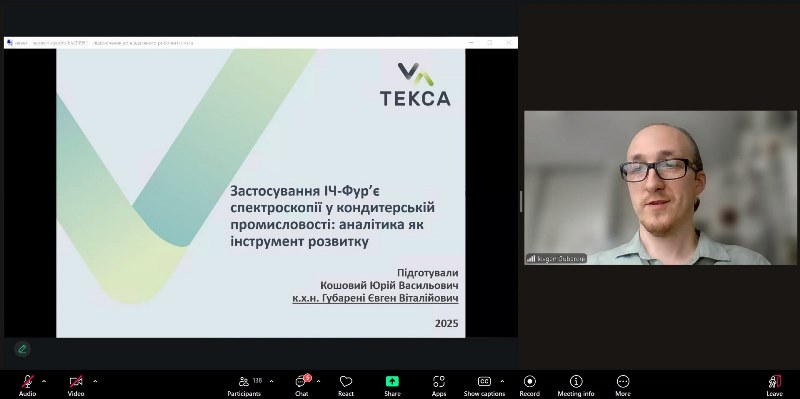 Жваве обговорення викликала доповідь інженера-програміста ТОВ «ТЕКСА» Євгена Губарені щодо застосування БІЧ-Фур’є спектроскопії у кондитерській галузі з метою контролю якості сировини та готової продукції.