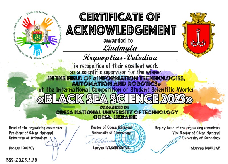 Кафедра мехатроніки та пакувальної техніки вітає призерів та їх керівників Міжнародного конкурсу студентських наукових праць «Black Sea Science 2023», який щорічно проводиться на базі Одеського національного технологічного університету під егідою Black Sea Universities Network та ISEKI-FoodAssociation!