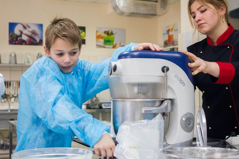 Майбутні вступники були активно залучені до процесу приготування десерту, допомагали кондитеру на всіх технологічних етапах – підготовки і випікання основи для макаронс із мигдального борошна, приготуванні шоколадного ганашу як начинки, формуванні й декоруванні кондитерських виробів. Школярі та студенти коледжів дізналися, як отримати рівну, без тріщин текстуру десерту, найоптимальніші режими випікання, особливості роботи з кондитерськими мішками для створення виробів ідеальної форми.