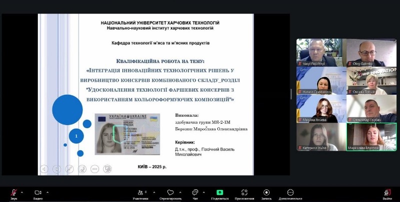Захист відбувся в межах комплексної теми «Інтеграція інноваційних технологічних рішень у виробництво консервів комбінованого складу», що відображає сучасні виклики та потреби галузі. Були представлені магістерські роботи Мирослави Березюк і Катерини Ільїної. Їх дослідження присвячені удосконаленню технології фаршевих консервів із використанням кольороформуючих композицій і розробленню плану НАССР для фаршевих консервів.